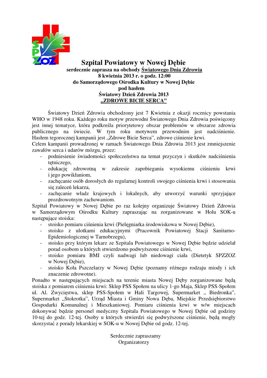 Światowy Dzień Zdrowia „ZDROWE BICIE SERCA"