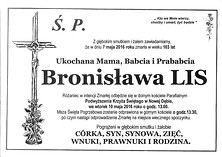 7 maja w wieku 103 lat zmarła Bronisława Lis, emerytowana nauczycielka, wieloletnia dyrektor Szkoły Podstawowej nr 1 w Nowej Dębie.