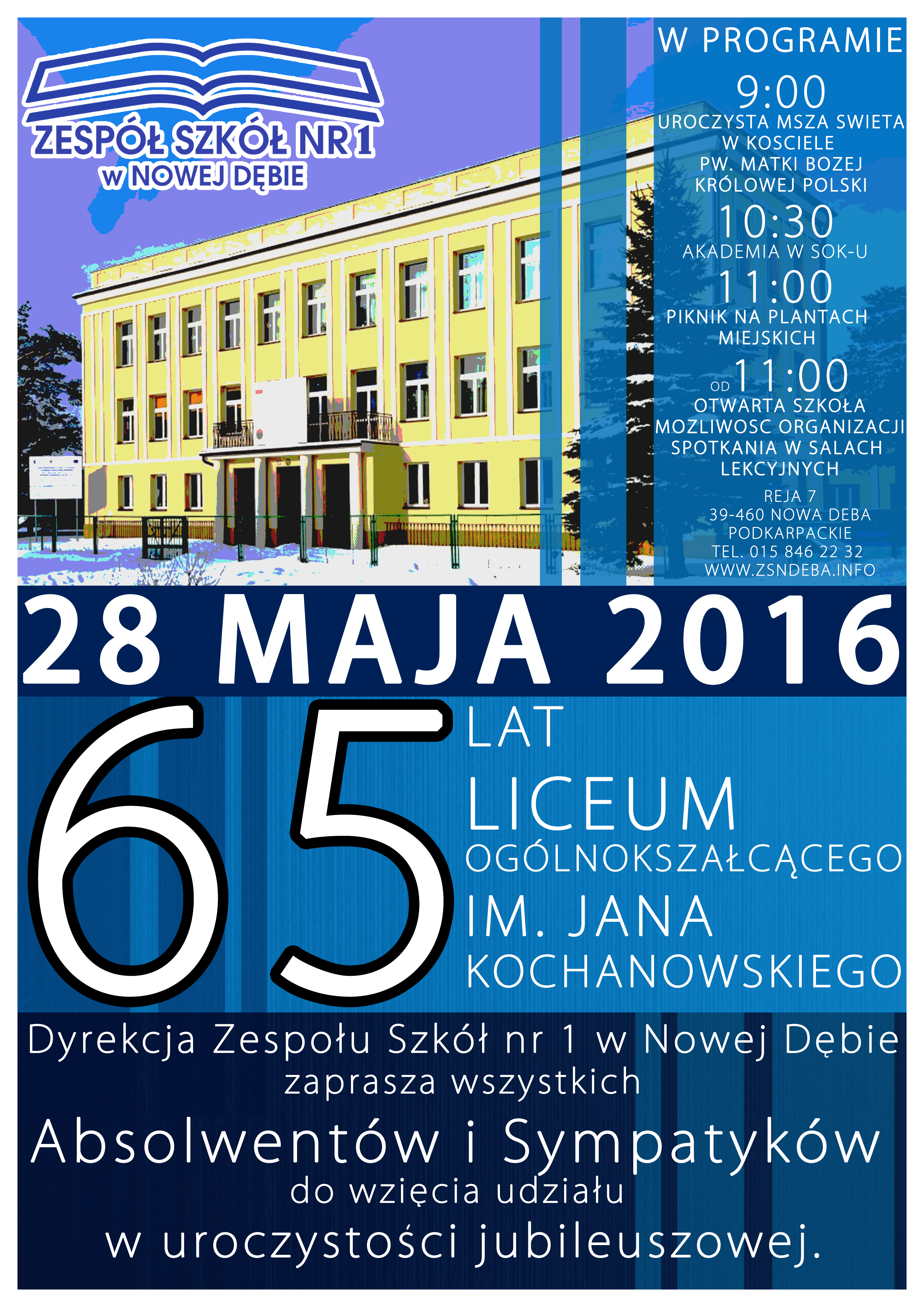 65 Lat Liceum Ogólnokształcącego w Nowej Dębie - zaproszenie