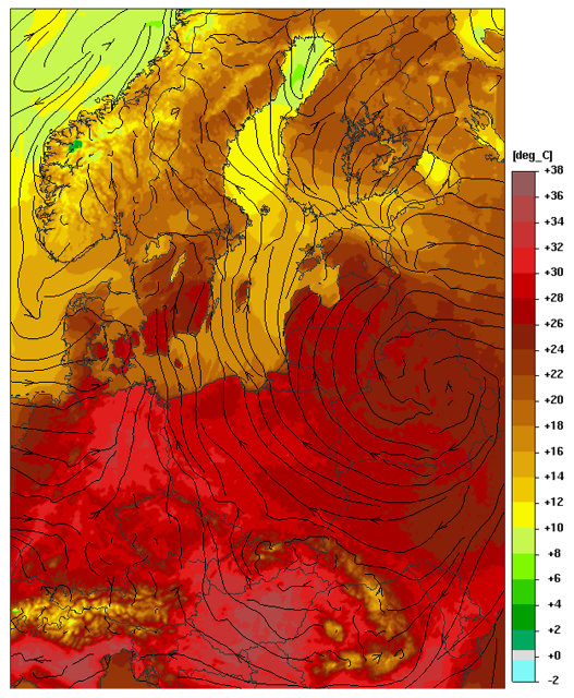 Przebieg: Prognozuje się temperaturę maksymalną w dzień od 29°C do 33°C. Temperatura minimalna w nocy od 18°C do 20°C.