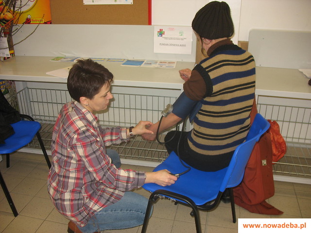 Osoby odwiedzające wyżej wymienione miejsca mogły się dowiedzieć jak fatalne skutki ma nadciśnienie tętnicze. Łącznie dokonano pomiaru ciśnienia krwi u 199 osób tj. u 142 kobiet i 57 mężczyzn. U 115 osób odnotowano prawidłowe ciśnienie natomiast u 84 stwierdzono ciśnienie podwyższone. Najwięcej osób z podwyższonym ciśnieniem odnotowano w przedziale od 50 do 60 roku życia. Osoby u których stwierdzono nieprawidłowe ciśnienie, zostały poinformowane o możliwości uzyskania porady lekarskiej, którą udzielał lek. med. Dariusz Piskorz w Samorządowym Ośrodku Kultury w Nowej Dębie od godziny 12-stej.