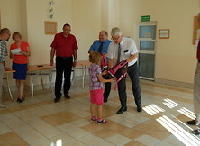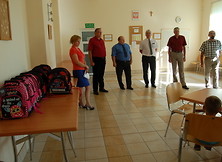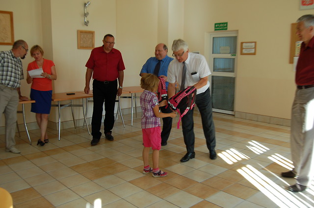 Plecaki wręczali Dyrektorzy Rejonu Energetycznego Mielec - Ryszard Masłyk oraz Piotr Bogacz, Kierownik Posterunku Energetycznego Nowa Dęba Adam Mulawa w obecności burmistrza miastai gminy Nowa Dęba Wiesława Ordona, zastępcy burmistrza Leszka Mirowskiego oraz kierownika MGOPS Marii Tomczyk.