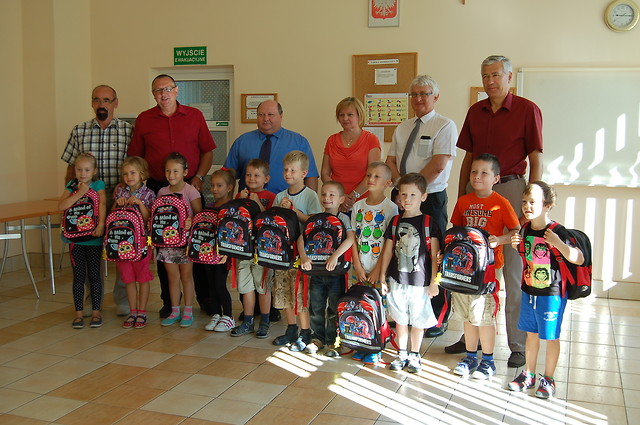 W plecakach znalazło się wyposażenie niezbędne do nauki w szkole: zeszyty, piórniki, farby, kredki, mazaki, bloki rysunkowe i techniczne, bibuła, papier wycinankowy, klej, nożyczki, plastelina. Wartość jednego tornistra wyniosła około 100zł.