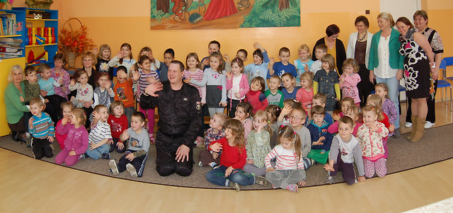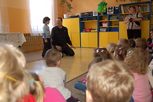 O Kevinie mówi się, że to „najpopularniejszy Anglik w Polsce”. Strażak i showman, znany z programów telewizyjnych razem z Centrum Edukacji Atut od wielu lat współpracuje z przedszkolami organizując zajęcia z języka angielskiego dla najmłodszych. Nasz gość w trakcie rozmowy przybliżył przedszkolakom zasady bezpieczeństwa i sposoby zachowania w przypadku pożaru. Dzieci bawiąc się prezentowały swoją wiedzę dotyczącą znajomości numerów alarmowych zarówno w języku polskim jak i angielskim oraz to, jak zachować się w czasie pożaru. Specjalnie dla gościa zaśpiewano piosenki po angielsku, wręczono okazyjne laurki, a na zakończenie zrobiono pamiątkowe zdjęcia.