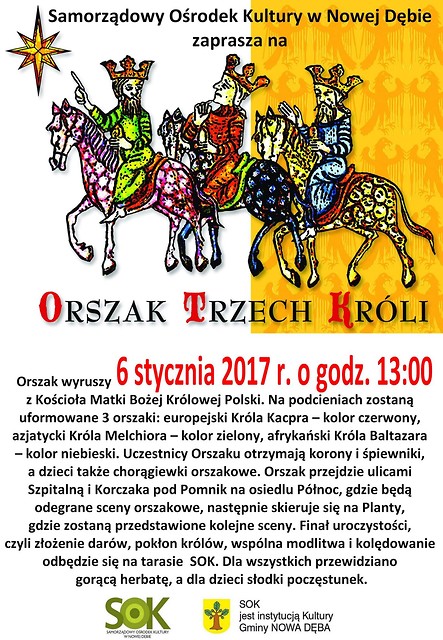 Już po raz 9 na świecie i w Polsce, a po raz trzeci w naszym mieście, przejdzie ulicami Orszak Trzech Króli, aby w dniu Święta Objawienia Pańskiego podążyć za Trzema Królami do Stajenki i ukłonić się Nowo Narodzonemu Dzieciątku Jezus! W roku 2017 orszak przejdzie ulicami ponad 500 miejscowości! 6 stycznia 2017 r. zwykli ludzie: rodziny, sąsiedzi, na ulicach wiosek, miast i miasteczek złączą się razem opowiadając tak, jak potrafią, swoimi słowami i swoim sercem historię sprzed 2000 lat.