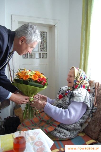 Czcigodną jubilatkę odwiedził w jej domu burmistrz miasta i gminy Nowa Dęba Wiesław Ordon wraz z kierownikiem Urzędu Stanu Cywilnego w Nowej Dębie Bożeną Szczepan. Były kwiaty i czekoladki, ponieważ pani Bronisława uwielbia słodycze.