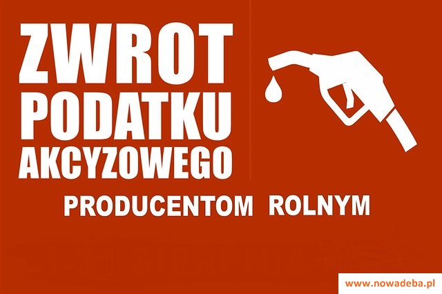 Burmistrz Miasta i Gminy Nowa Dęba informuje, że od 1 lutego 2020 r. do 2 marca 2020 r. są przyjmowane wnioski o zwrot podatku akcyzowego zawartego w cenie oleju napędowego producentom rolnym (formularz wniosku do pobrania www.nowadeba.pl lub w pok. 207 – II piętro Urzędu Miasta i Gminy w godzinach pracy urzędu).