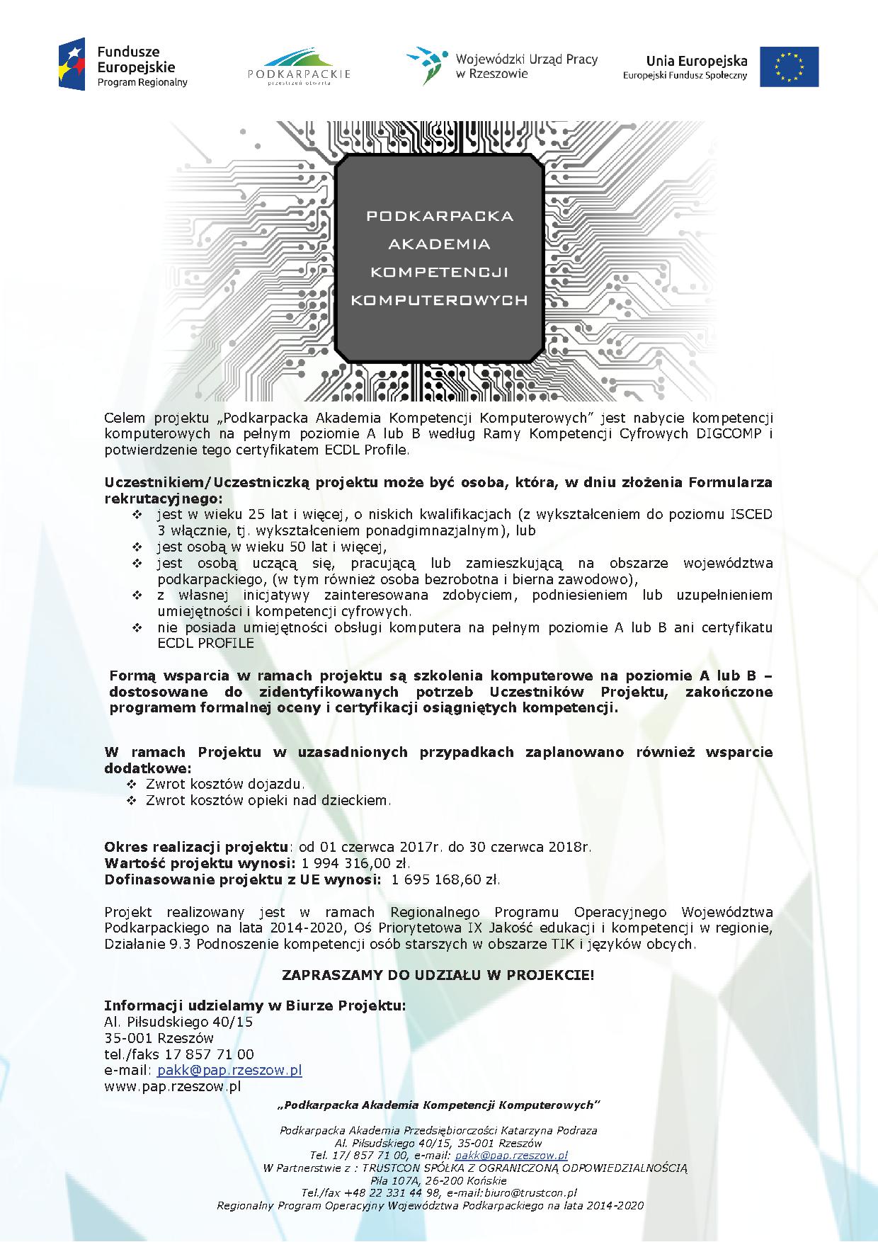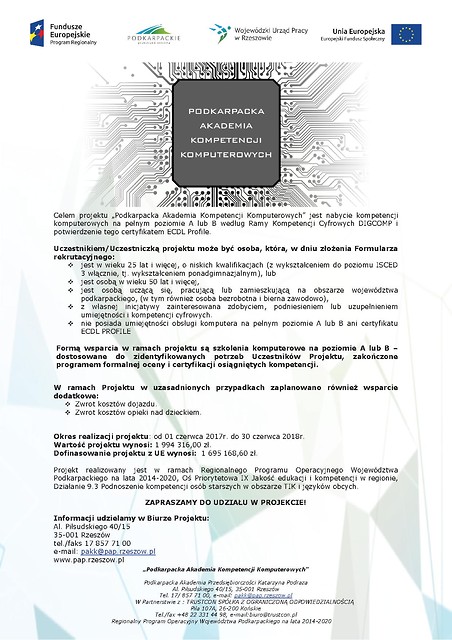 Podkarpacka Akademia Kompetencji Komputerowych zaprasza do udziału w projekcie