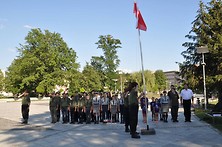 Poczet flagowy podniósł na maszt biało-czerwoną flagę państwową, został odtworzony hymn Polski, a dokładnie o godzinie 17:00 zawyła syrena. Następnie na trąbce został wykonany capstrzyk. Na koniec wysłuchaliśmy wiersza Krzysztofa Kamila Baczyńskiego - Elegia o... [chłopcu polskim]. O godzinie 18:00 uczestniczyliśmy w pamiątkowej mszy świętej.