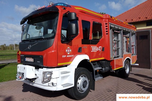 13 października 2017 r. Ochotnicza Straż Pożarna w Jadachach wzbogaciła się o nowy średni samochód ratowniczo-gaśniczy marki VOLVO FLD3C F wartości 749 439 zł.