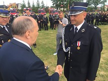 Raport o gotowości do rozpoczęcia uroczystości przyjął od dowódcy uroczystości mł. kpt. Damiana Ruły komendant wojewódzki PSP st. bryg. Andrzej Babiec.