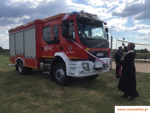 Po przedstawieniu przez druha Tadeusza Jadacha rysu historycznego Ochotniczej Straży Pożarnej w Jadachach nastąpiło przekazanie przez posła na Sejm RP Zbigniewa Chmielowca, wicemarszałka woj. podkarpackiego Bogdana Romaniuka, komendanta wojewódzkiego PSP st. bryg. Andrzeja Babca oraz komendanta miejskiego PSP w Tarnobrzegu mł. bryg. Mariana Roga na ręce naczelnika OSP w Jadachach druha Krzysztofa Pająka kompletu dokumentów oraz kluczyków do nowego pojazdu ratowniczo-gaśniczego.
