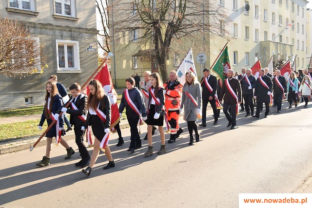 Nowodębskie obchody 100 rocznicy odzyskania przez Polskę niepodległości rozpoczęły się Mszą św. koncelebrowaną w intencji ojczyzny w kościele p.w. Podwyższenia Krzyża Św. w Nowej Dębie pod przewodnictwem ks. dr Mieczysława Wolanina. Mszę św. poprzedził koncert z repertuarem utworów patriotycznych w wykonaniu Orkiestry Dętej Miasta i Gminy Nowa Dęba. Po Mszy św. poczty sztandarowe Jednostki Wojskowej, Ochotniczych Straży Pożarnych, szkół i instytucji z terenu miasta i gminy Nowa Dęba, harcerze ze Szczepu „Jedynka” oraz mieszkańcy przemaszerowali ulicami miasta na Plac majora Jana Gryczmana.