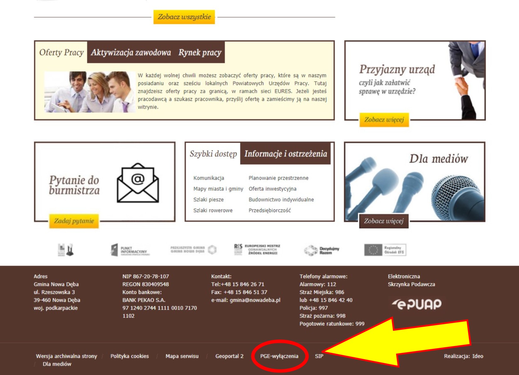 Na stronie internetowej gminy Nowa Dęba (w dolnym pasku odnośników) został zamieszczony link do informacji o planowanych przerwach w dostarczaniu energii elektrycznej przez PGE Dystrybucja S.A. Oddział Rzeszów.