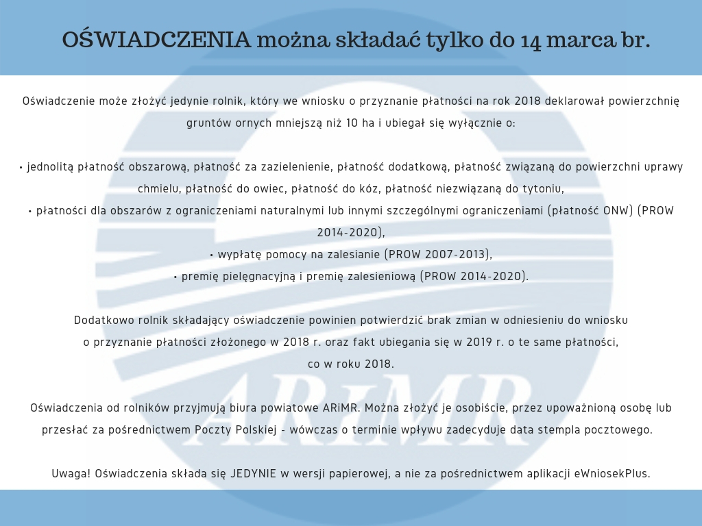 Informacja ARiMR dotycząca oświadczeń o dopłaty dla rolników