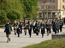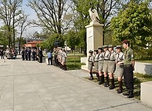 W asyście harcerzy ze szczepu "Jedynka" w Nowej Dębie poczet flagowy wystawiony przez Jednostkę Wojskową w Nowej Dębie wciągnął flagę państwową na maszt.