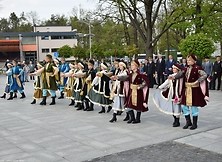 Po odegraniu przez orkiestrę hymnu państwowego Zespół Pieśni i Tańca "Dębianie" wykonał "Poloneza", a na zakończenie uroczystości mieszkańcy odebrali biało-czerwone flagi.