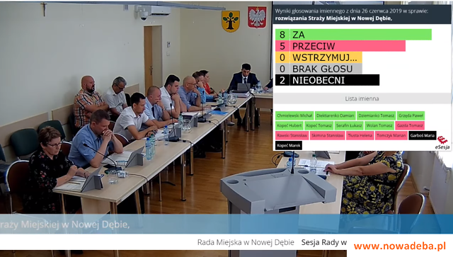 Na sesji Rady Miejskiej 26 czerwca 2019 r. radni podjęli uchwałę w sprawie rozwiązania Straży Miejskiej w Nowej Dębie.
