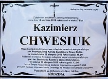 15 sierpnia 2019 r. w wieku 73 lat zmarł Kazimierz Chwesiuk - działacz "Solidarności", radny Rady Miejskiej w latach 1990-1994, Zasłużony dla Miasta i Gminy Nowa Dęba (1996 r.).