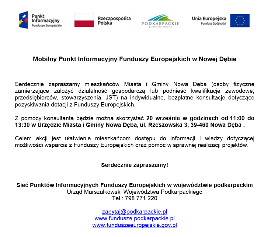 Mobilny Punkt Informacyjny Funduszy Europejskich w Nowej Dębie