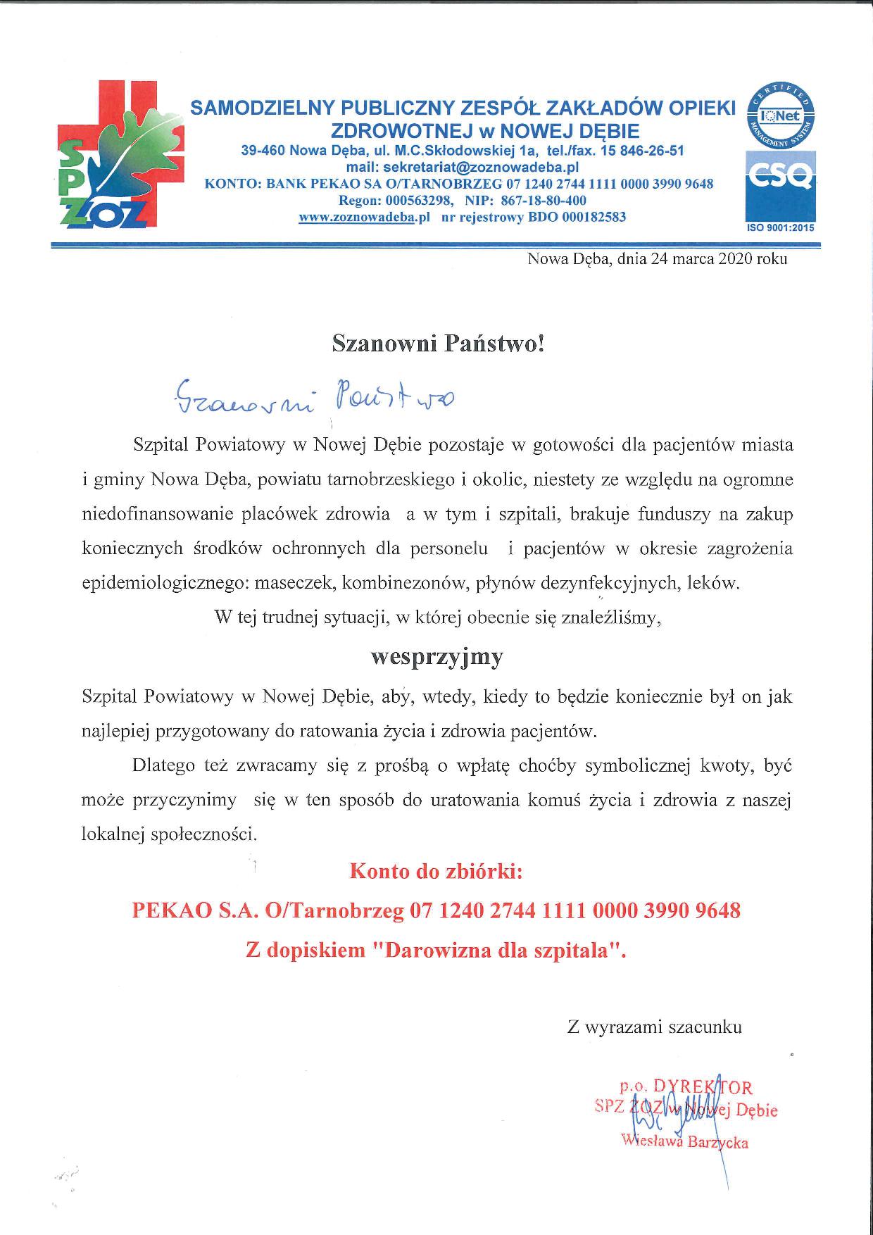 Wesprzyjmy szpital w Nowej Dębie