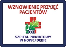 Od 11 maja Szpital powiatowy w Nowej Dębie wznawia przyjęcia pacjentów na oddziały: psychiatryczny, dziecięcy, ginekologiczno - położniczy oraz blok operacyjny. Czynna będzie też izba przyjęć z nocną i świąteczną opieką zdrowotną oraz fizjoterapia ambulatoryjna. Także od dziś pacjenci mogą znów skorzystać z poradni specjalistycznej przy ul. M. C. Skłodowskiej.