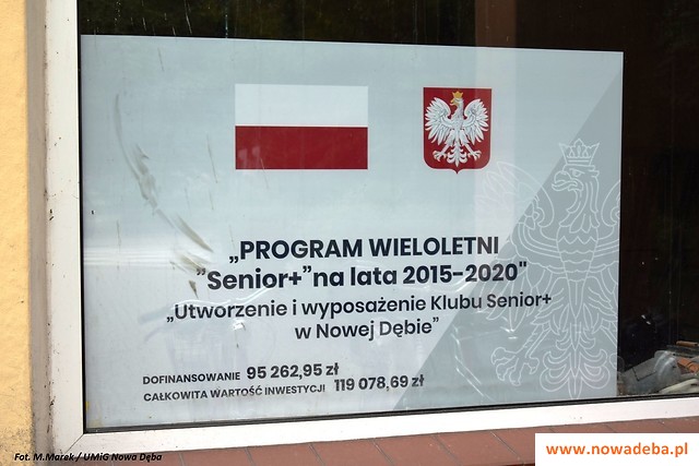 Zadanie pod nazwą „Utworzenie i wyposażenie Klubu Senior+ w Nowej Dębie” realizowane jest w ramach rządowego programu pn. „Program Wieloletni Senior+ na lata 2015-2020” współfinansowanego z budżetu państwa. Rozpoczęto już prace remontowo-adaptacyjne, w wyniku których powstanie funkcjonalny klub dla naszych seniorów z salą główną i zapleczem sanitarno – kuchennym (aneks kuchenny, łazienki i ubikacje damskie, męskie oraz dla osób niepełnosprawnych).