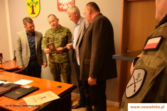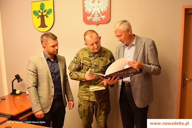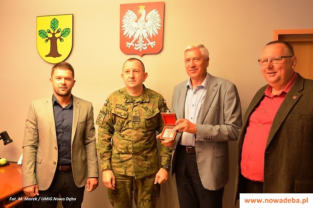 Na zakończenie spotkania panowie umówili się na kolejną rozmowę, podczas której zostaną przedstawione szczegóły budowy pułku. Burmistrz przekazał gościowi publikację o Nowej Dębie i album o mieście wydany kilka lat temu, co ucieszyło gen. Gromadzińskiego, który jest pasjonatem Polski lokalnej. Gość zrewanżował się przekazując pamiątkowy medal z podobizną gen. dyw. Franciszka Krajewskiego, dowódcy 18 Dywizji Piechoty z czasów wojny polsko-bolszewickiej (do której historii nawiązuje 18 DZ), i patrona 18 Dywizji Zmechanizowanej - gen. broni Tadeusz Buka (zginął w Smoleńsku w 2010 r.)