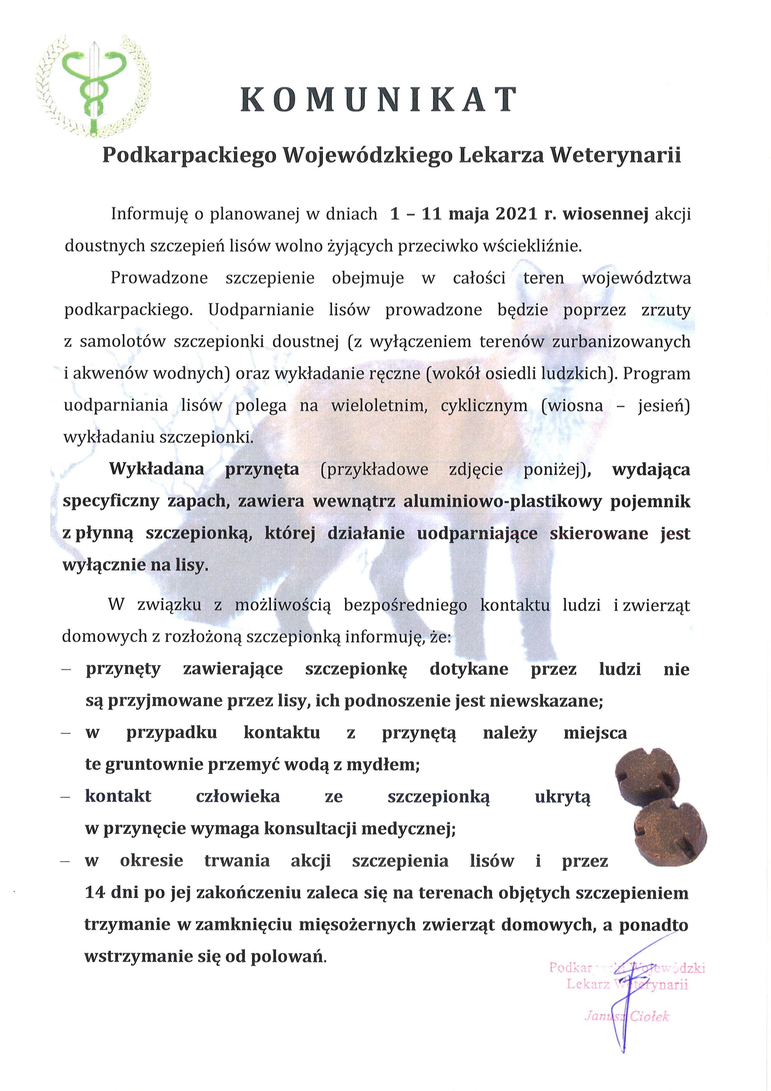 KOMUNIKAT Podkarpackiego Wojewódzkiego Lekarza Weterynarii