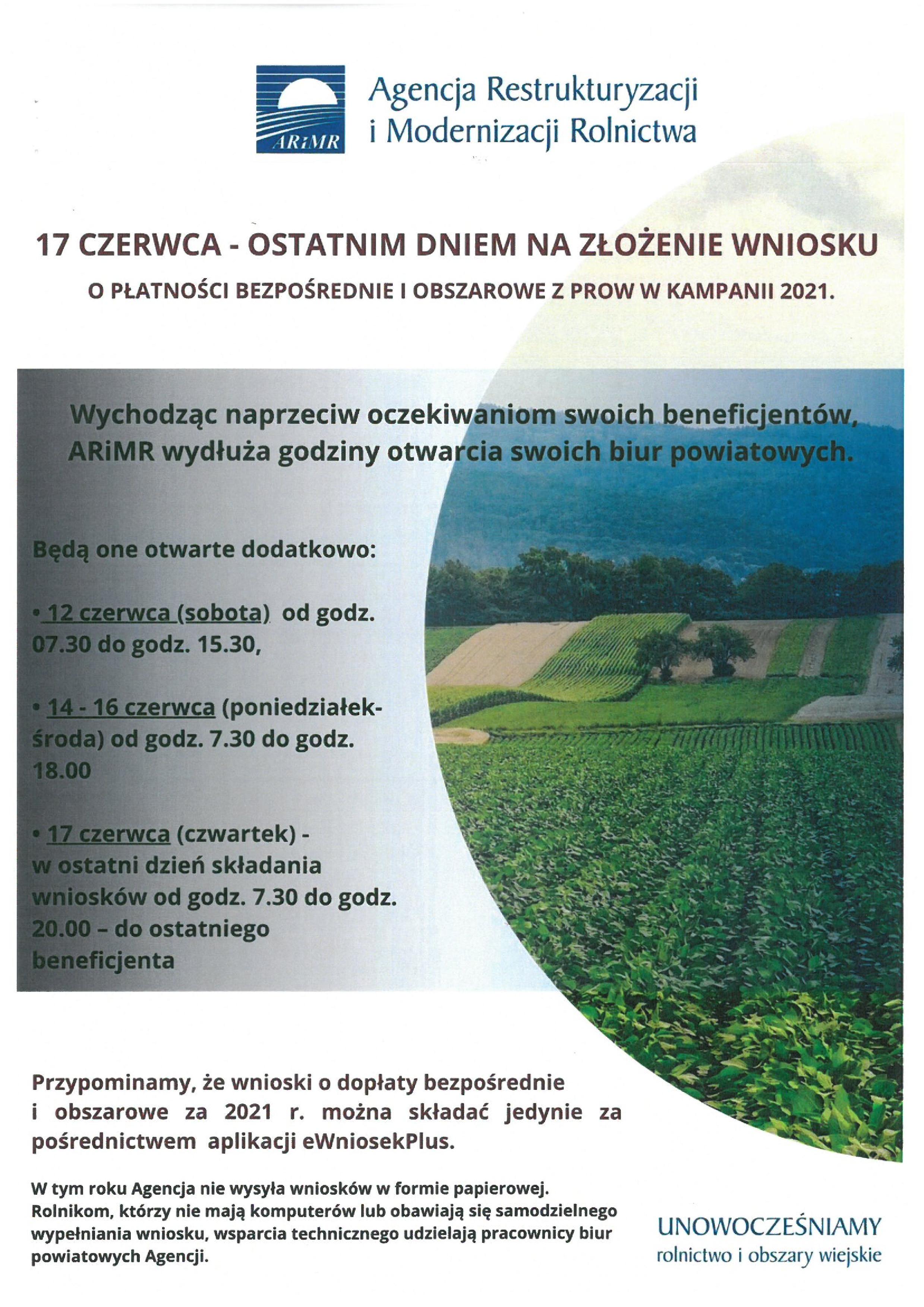 Informacja Agencji Restrukturyzacji i Modernizacji Rolnictwa - PŁATNOŚCI BEZPOŚREDNIE I OBSZAROWE Z PROW W KAMPANII 2021