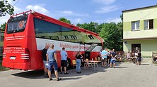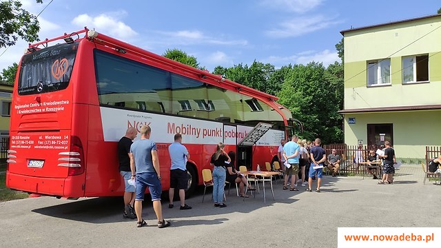 Przed siedzibą Miejsko- Gminnego Ośrodka Pomocy Społecznej w Nowej Dębie stacjonował Krwiobus Regionalnego Centrum Krwiodawstwa i Krwiolecznictwa w Rzeszowie.