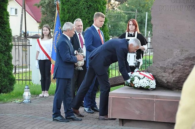 Po modlitwie burmistrz Wiesław Ordon wraz z radnymi Tomaszem Dryką i Stanisławem Skiminą oraz sołtysem Janem Kotulskim złożyli kwiaty pamięci i zapalili znicze przy pomniku. Kwiaty złożyła także społeczność szkolna z dyrektor Renatą Rożek.