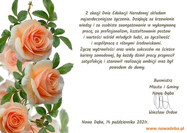 Z okazji Dnia Edukacji Narodowej składam najserdeczniejsze życzenia Nauczycielom i Pracownikom Oświaty.