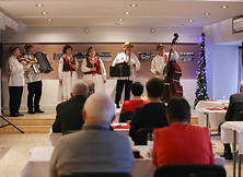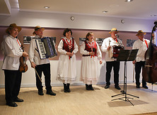 Po stosownych laudacjach przyszedł czas na wręczenie medali przez burmistrza, do których kierownik dołączył dyplom gratulacyjny, a także bukiet kwiatów dla pań. Po oficjalnej części ceremonii wręczenia medali przyszedł czas na lampkę szampana i tradycyjne „Sto lat”, które później powtórzył Zespół Ludowy „Cyganianki”. Śpiewacy i muzycy z Cyganów przypomnieli Jubilatom piosenki z czasów ich młodości, co najwyraźniej wywołało poruszenie szacownych gości. Za ten miły akcent „Cyganiankom” podziękował Władysław Flis.