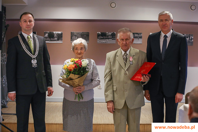 Burmistrz W. Ordon w wystąpieniu do małżonków zaznaczył doniosłość tej chwili dla całej wspólnoty lokalnej, nie tylko dla samych małżonków czy ich rodzin. To Państwo budowaliście, poprzez życie małżeńskie i rodzinne, swoje otoczenie, to dzięki Wam zaludniały się szkoły, to Wy stawaliście za biurkiem, maszyną, na roli, aby budować swoją lepszą przyszłość. A przez to tworzyliście warunki dla rozwoju Nowej Dęby i naszych wsi – zaznaczył burmistrz. Złożył także małżonkom gratulacje i podziękowania za ich wspólną drogę. Życzył im, by kolejne dni wspólnoty małżeńskiej upływały z poczuciem, że otacza ich miłość najbliższych, sympatia znajomych, szacunek władz.