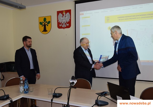 Burmistrz W. Ordon przedstawił ogólny zarys przygotowanej do realizacji inwestycji. W ramach tego zadania realizowane będą dwa odcinki chodnika po stronie zachodniej DK9. Jeden o długości 320 m zacznie się na wysokości ostatnich zabudowań jednostki wojskowej i będzie biegł do ulicy Kolejowej, z przejściem przez rzeczkę Dęba na wysokości remizy. Drugi odcinek o długości 660 m będzie biegł od ul. Słonecznej do zatoki autobusowej za Unimetem, gdzie w przyszłości ma powstać centrum handlowe. Chodnik będzie miał szerokość 2 m. – Poseł Zbigniew Chmielowiec po raz kolejny dowiódł skuteczności swych starań o sprawy ważne dla naszej gminy, za co bardzo mu dziękuję – zakończył spotkanie burmistrz.