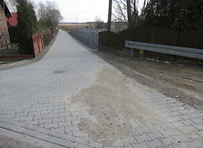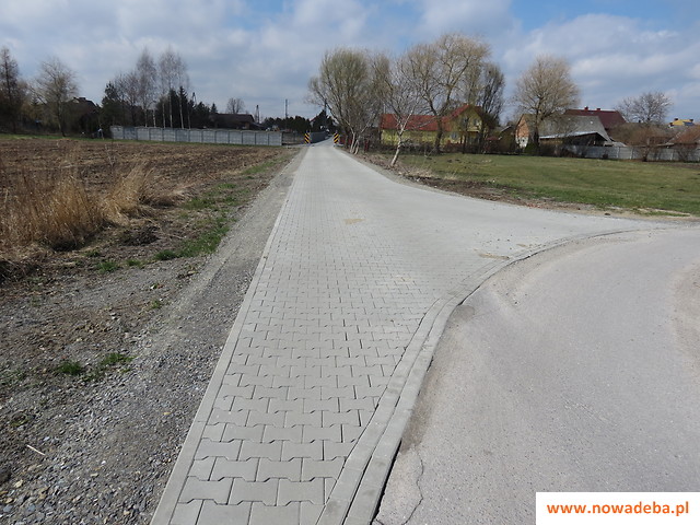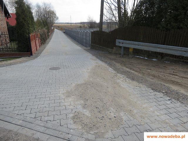 Pierwszy odcinek, o długości 94 metrów, łączy ul. Lipową z ul. Różaną, zapewniając tym samym łatwiejszy dostęp do DK9 i pól z tej części wsi. Przebudowany ciąg umieszczony został w granicach istniejącego wcześniej pasa drogowego o szerokości 3 metrów. Dotychczasowa nawierzchnia z kruszywa łamanego zastąpiona została przez nową - pokrytą betonową kostką brukową. Wykonano również pobocze szerokie na 0,5 metra. Wyremontowana droga zwiększyła atrakcyjność otaczającego terenu i poprawiła komunikację osobom mieszkającym w okolicy.