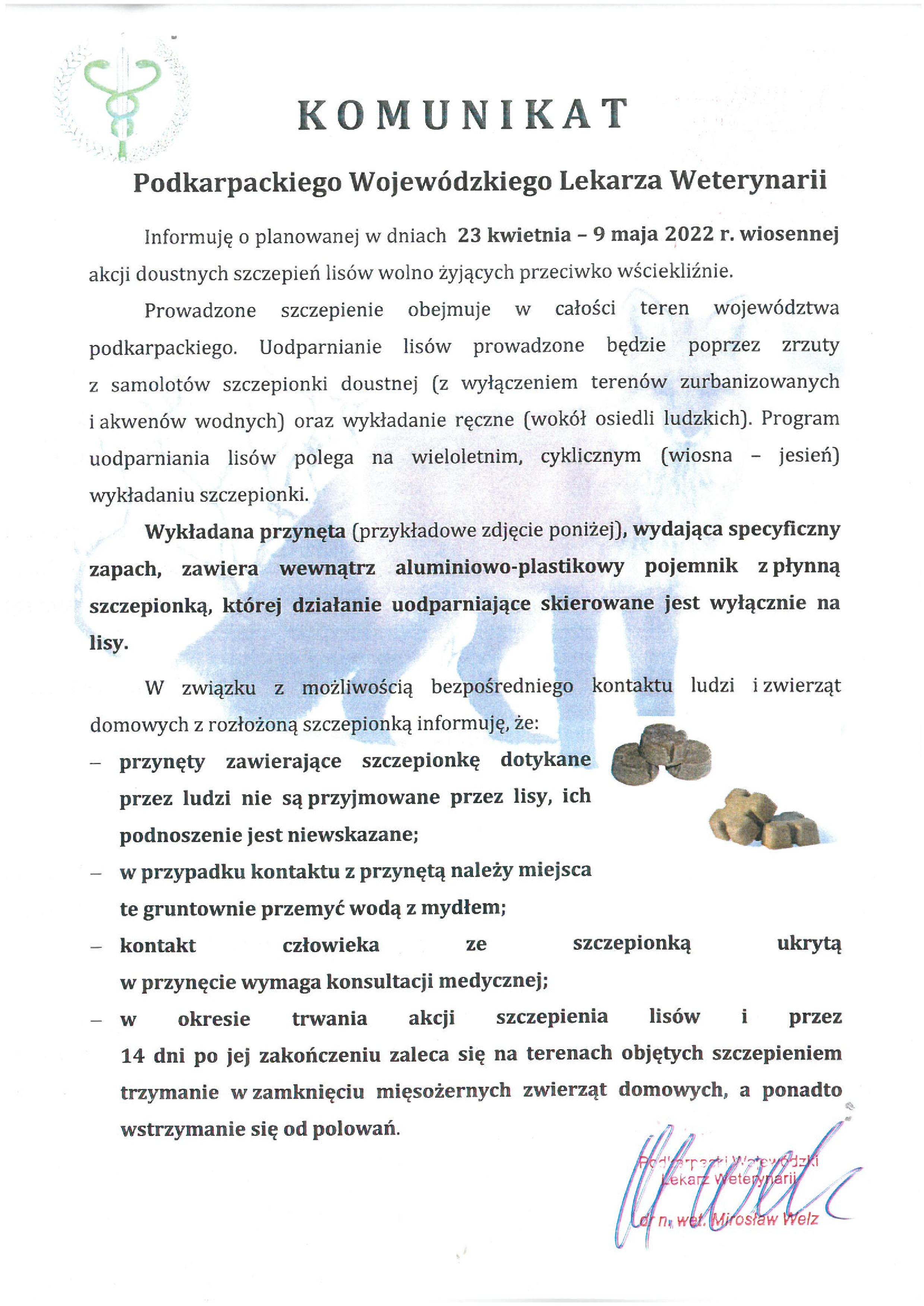 KOMUNIKAT Podkarpackiego Wojewódzkiego Lekarza Weterynarii
