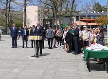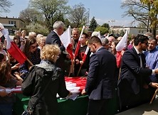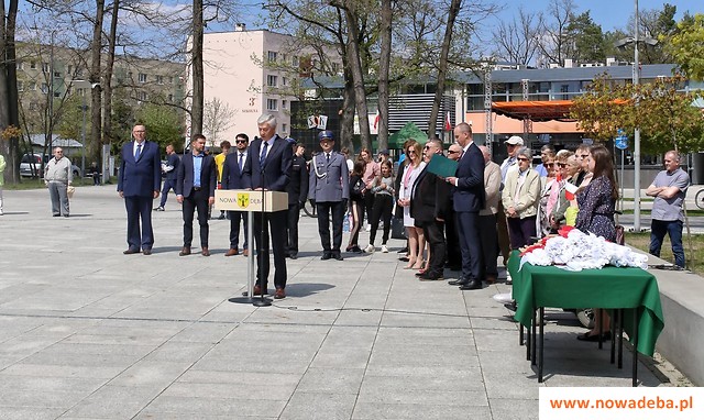 Następnie poczet flagowy Ośrodka Szkolenia Poligonowego Wojsk Lądowych „Dęba” dokonał uroczystego podniesienia flagi państwowej na maszt, przy czterech zwrotkach Mazurka Dąbrowskiego. Po hymnie do znaczenia biało-czerwonych kolorów odniósł się w zwięzłym wystąpieniu burmistrz Wiesław Ordon. - Poeta Zbigniew Herbert w wierszu „17 IX” pisał o przysiędze spiskowców wolności „na ptaka i na dwa kolory”. Jakże więc ważna jest biel i czerwień na sztandarze, jeśli na nią składa przysięgę żołnierz, który pójdzie w bój na śmierć i życie –powiedział burmistrz. Stwierdził także, że liczy na to, że Biało-Czerwona dumnie powiewać będzie na wietrze na naszych domach, balkonach, zakładach pracy.