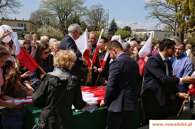 Na zakończenie części oficjalnej orkiestry dęte odegrały dwie zwrotki Roty Marii Konopnickiej. Po nich muzycy zagrali jeszcze marsze wojskowe. W tym czasie samorządowcy rozdali mieszkańcom biało-czerwone flagi do wywieszenia z okazji Święta Trzeciego Maja. Zaś członkowie Zespołu „Dębianie” przekazali młodszym mieszkańcom biało-czerwone baloniki i chorągiewki w narodowych barwach. W uroczystości wzięli udział także nowodębscy harcerze, widziani na placu tradycyjnie podczas świąt narodowych.