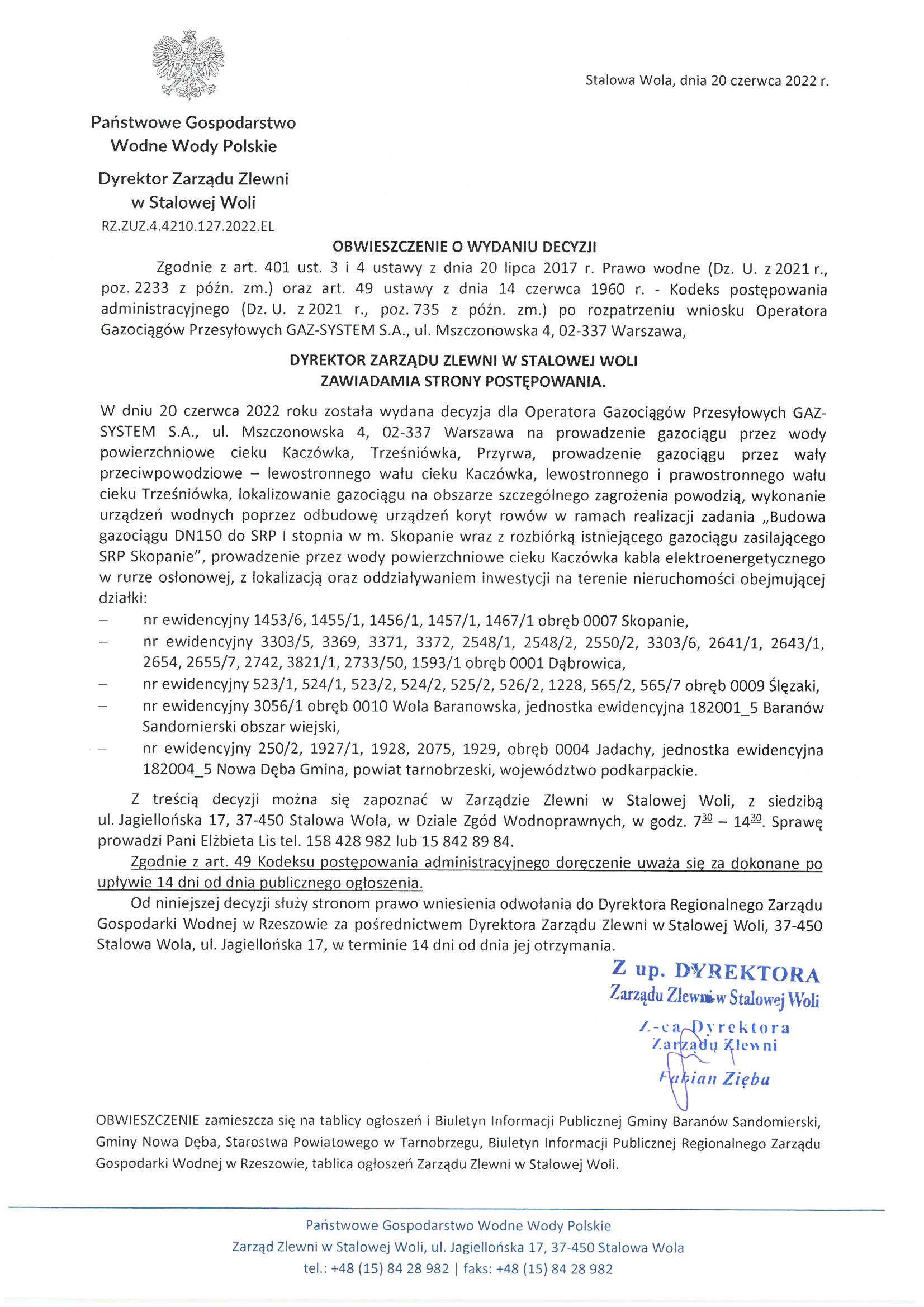 OBWIESZCZENIE O WYDANIU DECYZJI