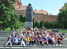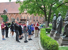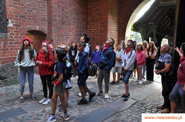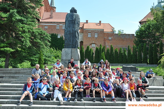 W trakcie rejsu z Krynicy Morskiej do Fromborka, przy pięknej słonecznej pogodzie dzieci zachwycały się krajobrazem Zalewu Wiślanego. Po przybiciu do brzegu koloniści ruszyli wzdłuż kanału kopernikańskiego do fromborskiej katedry. To tam wraz z przewodnikiem odkrywali tajemnice i historię tego ważnego miejsca, z którym nierozerwalnie związany był największy polski astronom – Mikołaj Kopernik. Oprócz wzniosłej architektury i malowniczej polichromii, dzieci podziwiały jeden z największych instrumentów organowych w Polsce, którego autorem jest gdański organmistrz Andrzej Nitrowski, który wykonał także organy w sandomierskiej katedrze. Następnie wszyscy udali się do wnętrza Wieży Radziejowskiego, gdzie znajduje się Wahadło Foucaulta, który jako pierwszy zastosował obliczenia i wynalazek Mikołaja Kopernika. To właśnie to urządzenie udowadnia ruch obrotowy Ziemi wokół własnej osi. Po wykonanym doświadczeniu, dzieci wyszły po 243 schodkach na szczyt wieży, aby podziwiać panoramę Fromborka i Zalewu Wiślanego.