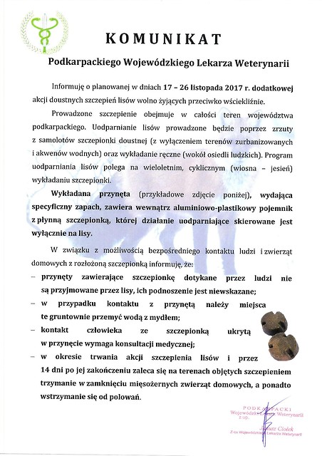 Akcja szczepienia lisów przeciwko wściekliźnie