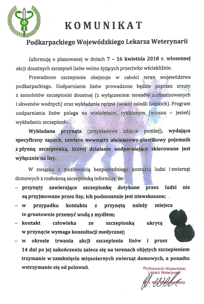 Wiosenna akcja szczepienia lisów przeciwko wściekliźnie