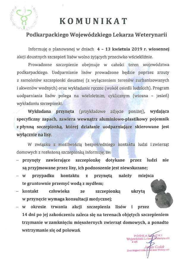 Wiosenna akcja szczepienia lisów przeciwko wściekliźnie