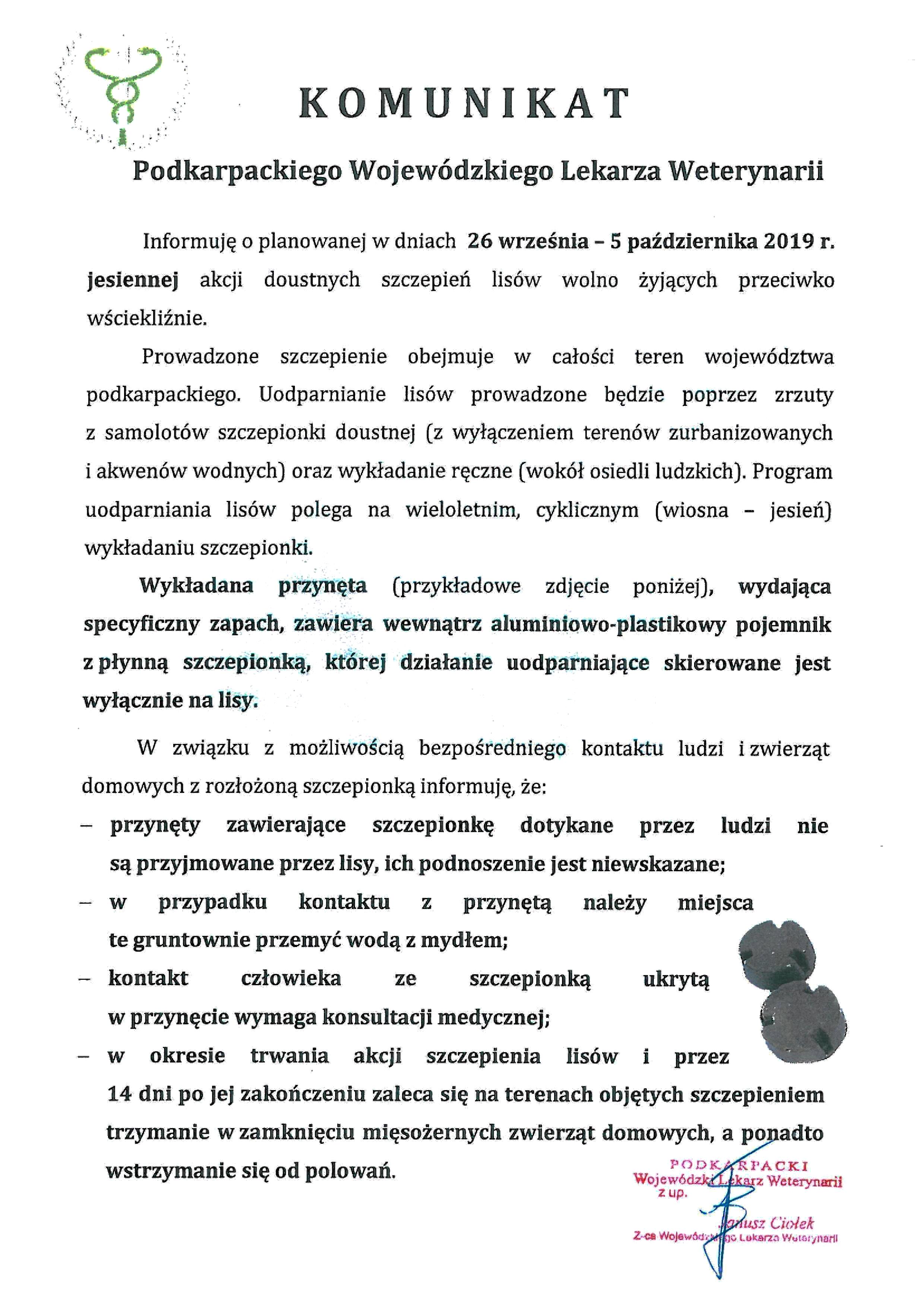 Jesienna akcja szczepienia lisów przeciwko wściekliźnie