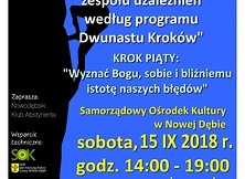 Nowodębski Klub Abstynenta dzięki dotacji otrzymanej od Burmistrza Miasta i Gminy Nowa Dęba mógł skorzystać już z kilku przedsięwzięć. Na początku maja organizowaliśmy ognisko integracyjne, później braliśmy udział w jednodniowej wycieczce w Góry Świętokrzyskie. W lipcu płynęliśmy kajakami – był to coroczny trzeźwościowy spływ rzeką Tanew. Pod koniec sierpnia podziwialiśmy piękne Roztocze. Przed nami seria Warsztatów Terapeutycznych z Ojcem Adrianem. Pierwszy cykl warsztatów rozpocznie się 15 września o godzinie 14.00 w sali kameralnej Domu Kultury w Nowej Dębie. Zapraszamy wszystkich zainteresowanych, którzy chcą zasięgnąć wiedzy i porad w jaki sposób radzić sobie z osobą uzależnioną w rodzinie. A dla osób trzeźwiejących – jak radzić sobie z problemami w trzeźwym życiu na podstawie Programu Dwunastu Kroków. Zapraszamy