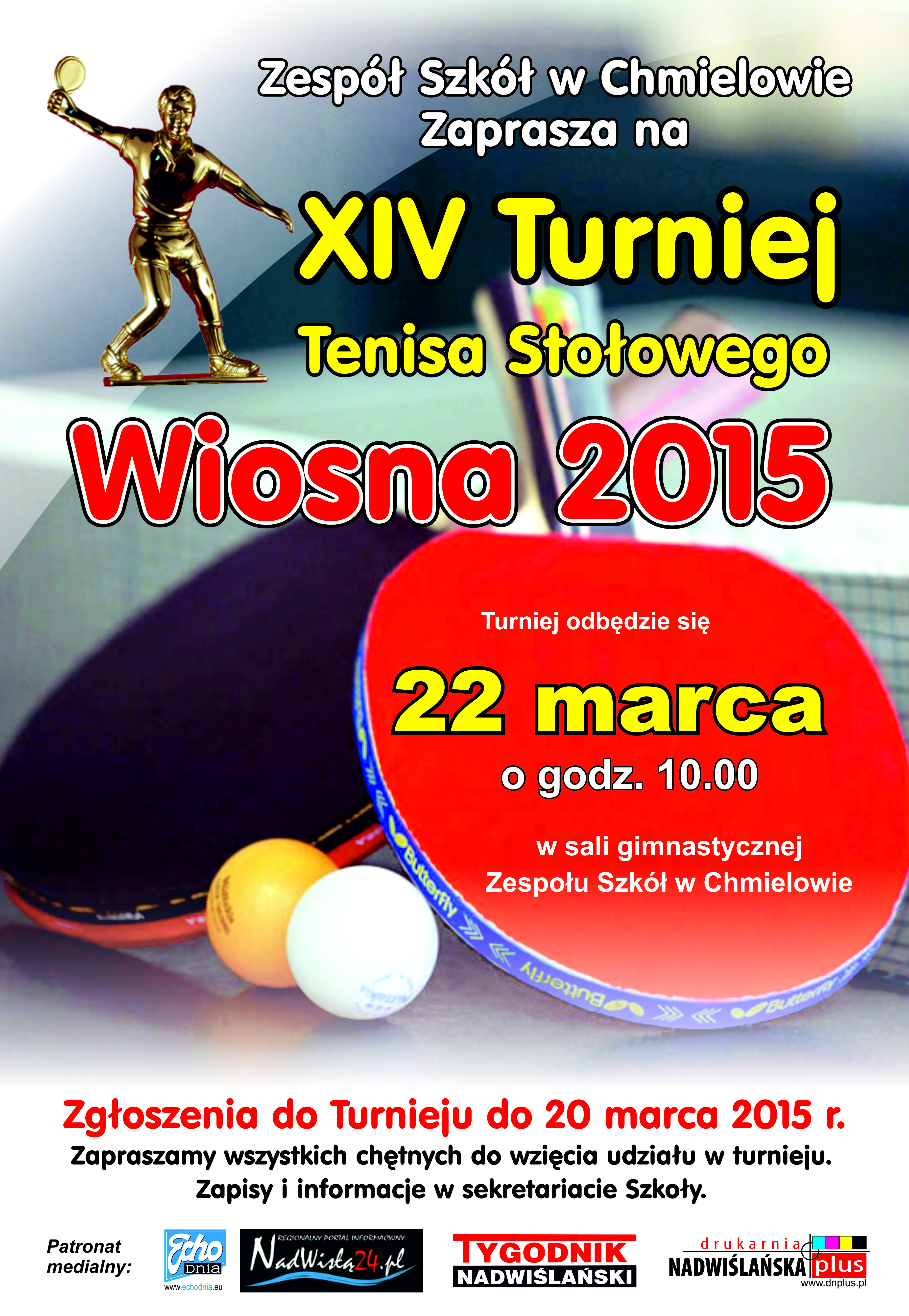 Zespół Szkół w Chmielowie zaprasza na XIV Turniej Tenisa Stołowego - Wiosna 2015