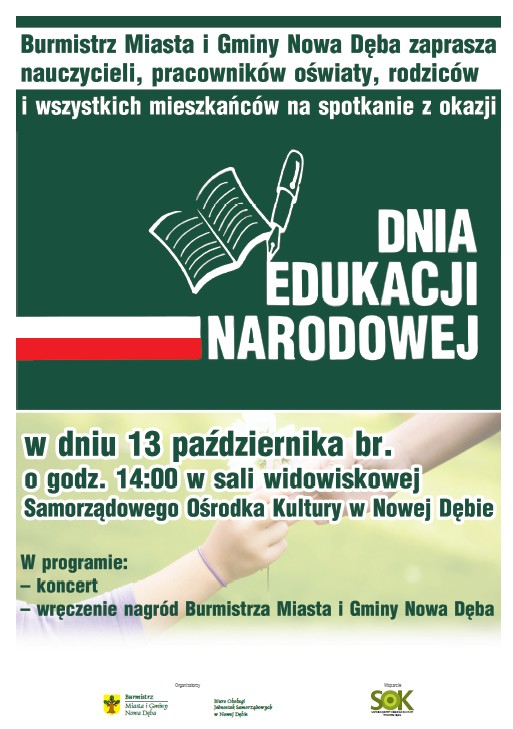 Burmistrz Miasta i Gminy Nowa Dęba zaprasza na spotkanie z okazji Dnia Edukacji Narodowej