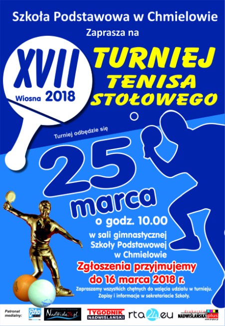 Szkoła Podstawowa w Chmielowie zaprasza na XVII Turniej Tenisa Stołowego